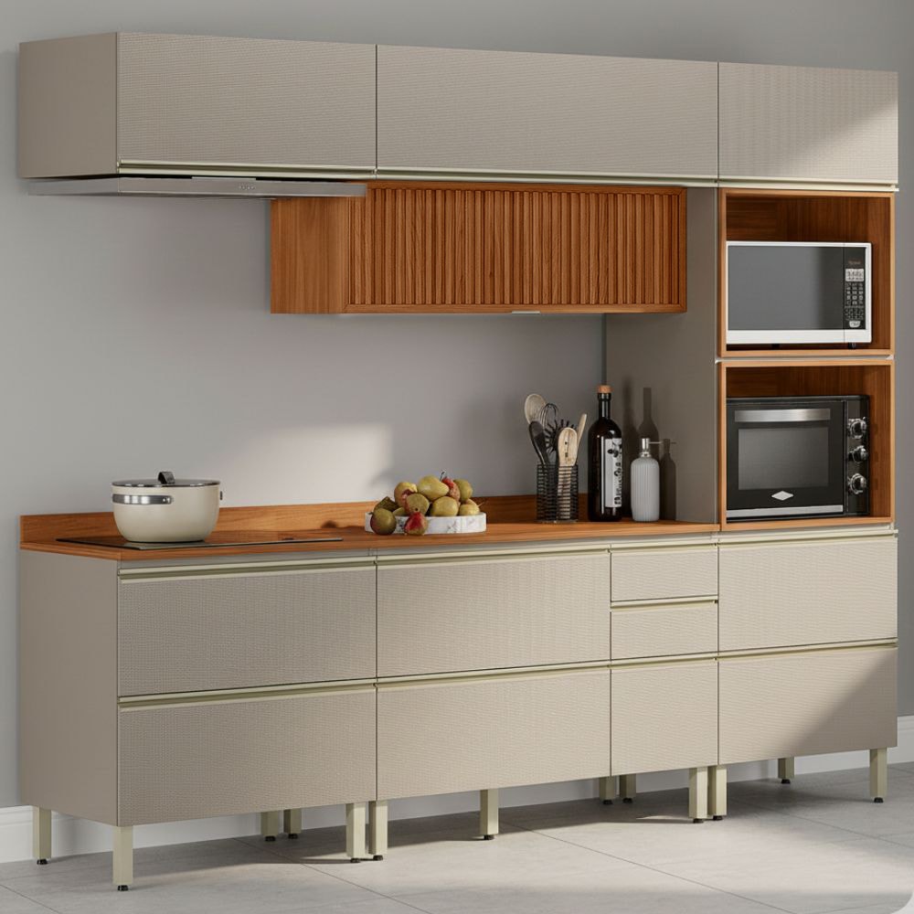 Cozinha Modulada 5 Pecas 270 cm Ripado DP2706 Nogueira Nude Prime Demartez