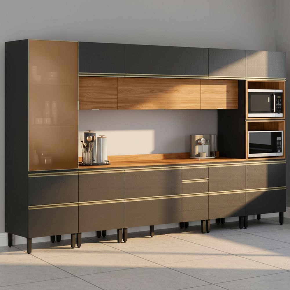 Cozinha Modulada 8 Pecas 370 cm MDF DP3701 Nogueira Carbono Prime Demartez