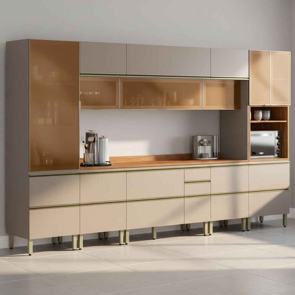 Cozinha Modulada 8 Pecas 370 cm Vidro DP3702 Nogueira Nude Prime Demartez