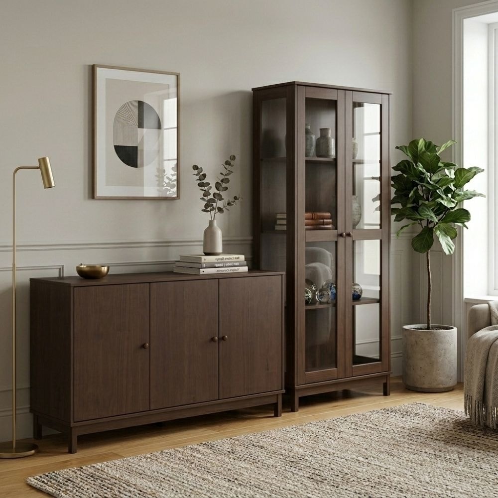 Cristaleira e Buffet Essência, o equilíbrio perfeito entre beleza e sofisticação, com presença natural e toque rústico que transforma o entorno. Ambos com estrutura 100% em Madeira Maciça Taeda (presença calorosa, toque orgânico) e acabamento em pintura brilho 5%. O conjunto é composto por dobradiças metálicas com amortecimento, puxadores metálicos (cor ouro envelhecido), amplas prateleiras internas de 16mm e pés retos reforçados. A cristaleira inclui um toque elegante e atemporal em sua lateral composta por vidro liso incolor envoltas de moldura em madeira maciça, assim como em suas portas. O buffet por sua vez, conta com amplo tampo e excelente espaço para armazenamento. Produtos serão entregues em 02 volumes.