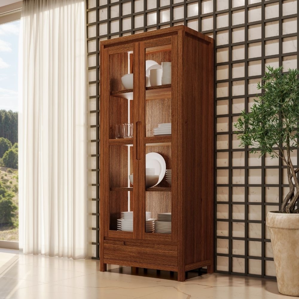 Cristaleira Nature, o toque rústico iluminado que harmoniza o seu ambiente com sofisticação. Desenvolvida por Designer, sua estrutura é composta 100% em Madeira Maciça Taeda (presença calorosa, toque orgânico) com acabamento em pintura brilho 5% e textura escovado (toque rústico que encontra o chique). Composta por portas em vidro liso incolor envoltas de moldura em madeira maciça com dobradiças metálicas e amortecimento, prateleiras internas reforçadas (22 mm) e gaveta externa com corrediças telescópicas. Destaque para os puxadores usinados estilo cava, LED Touch interno nas laterais (realçando suas melhores taças e louças) e pés retos também com 40 mm de espessura. Produto será entregue em 02 volumes.