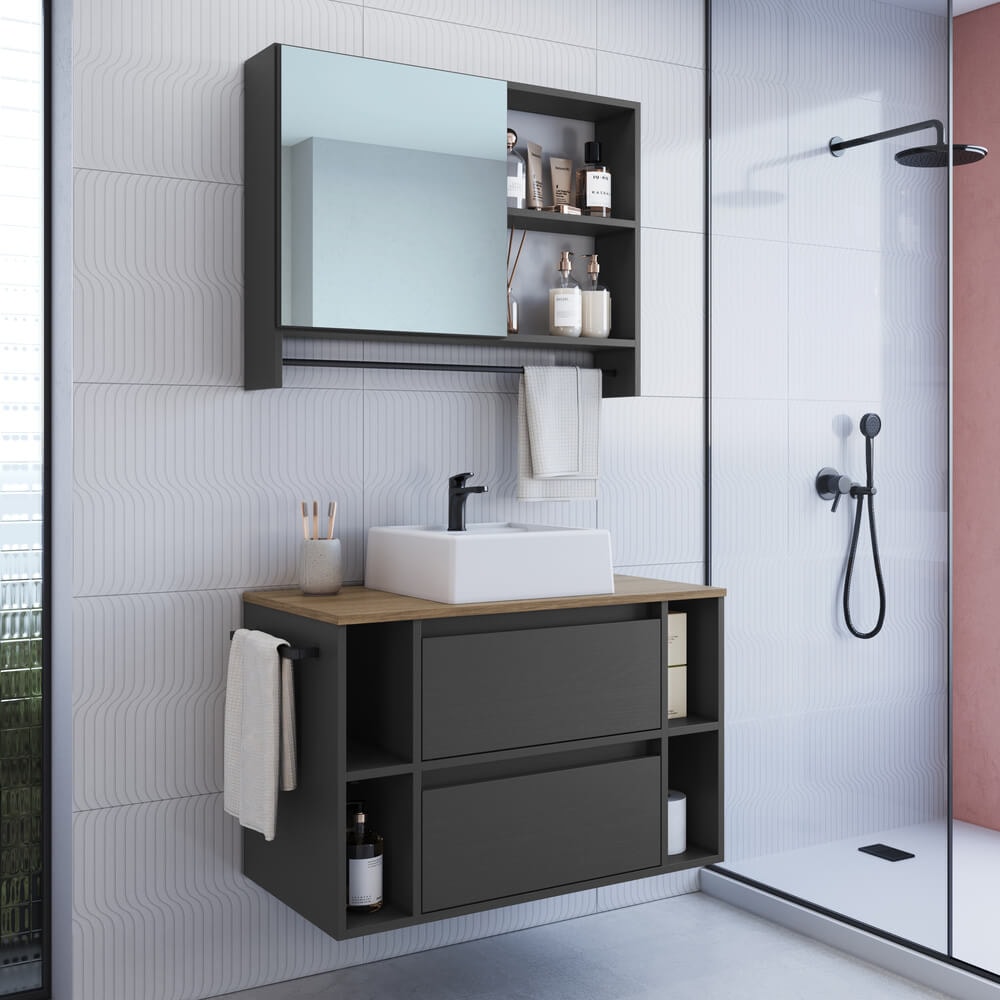 Conjunto pensado para quem busca um banheiro organizado, elegante e fácil de limpar.