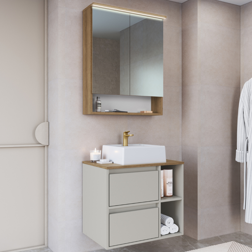 Espelheira Gabinete Suspenso Com Cuba Branca 60 cm Mell Arenas PRODDY