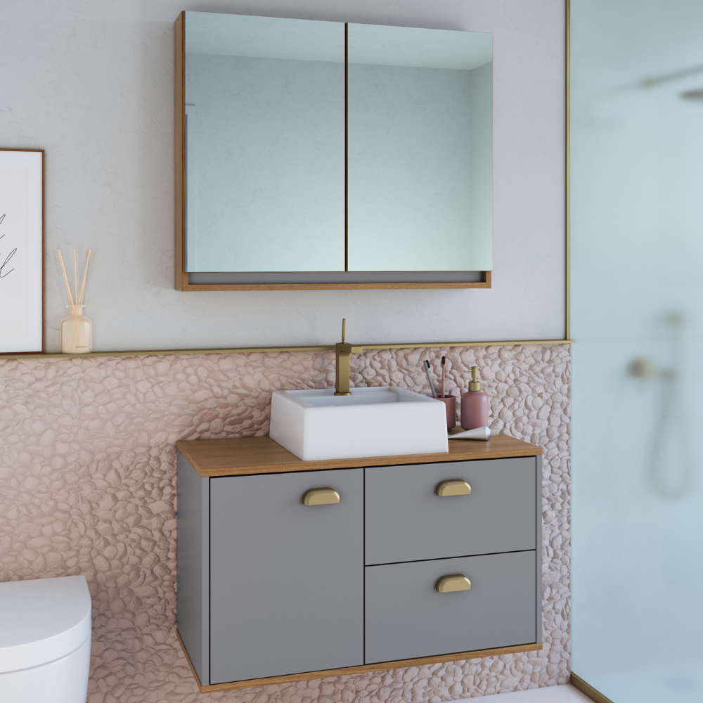 Gabinete e Espelheira Livia, conjunto que oferece soluções compactas para melhorar o aproveitamento do seu espaço!