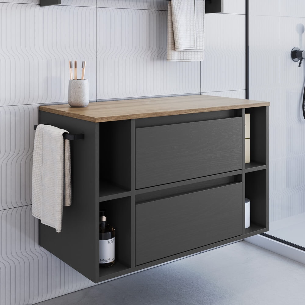 Gabinete Para Banheiro 01 Porta 01 Gaveta 80cm Mel Grafite PRODDY