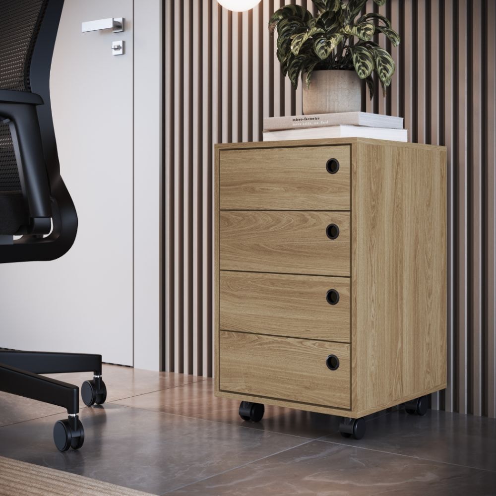 Gaveteiro Multiuso P1072, versátil e ideal para compor seu escritório. Possui estrutura em MDP 15 mm e acabamento FF (Finish Foil - Fosco). Composto por gavetas com corrediças metálicas (suportando até 5kg cada) com puxadores circulares em plástico, além de rodízios para melhor locomoção. Produto será entregue em 01 volume.