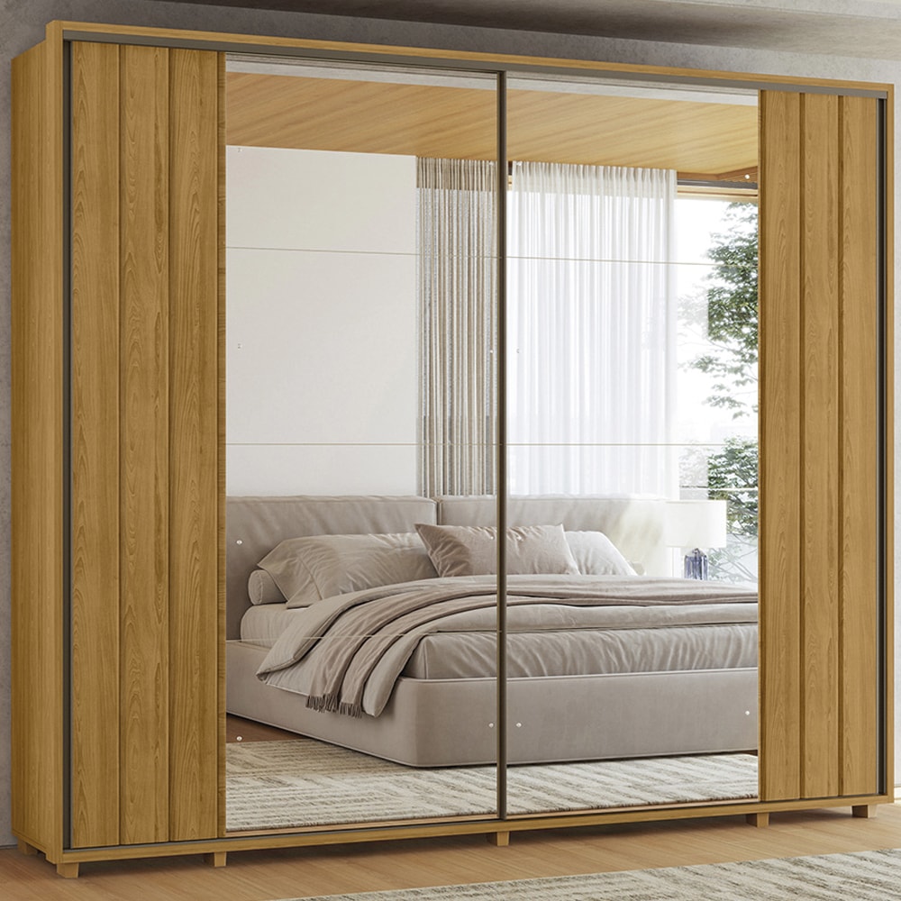 Guarda Roupa Casal 2 Portas Deslizante Com Espelhos Dali 278 cm Cumaru Madetec