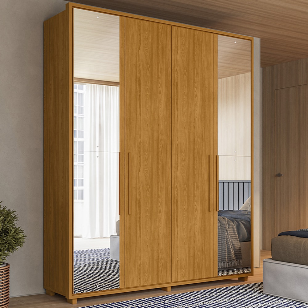 Guarda Roupa Casal 4 Portas Com Espelho MDF Greco 188 cm Cinamomo Madetec