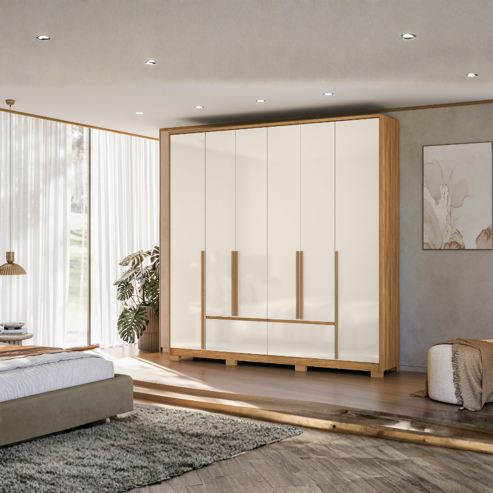 Guarda Roupa Casal 6 Portas 222 cm Denver Freijo Off White Moval