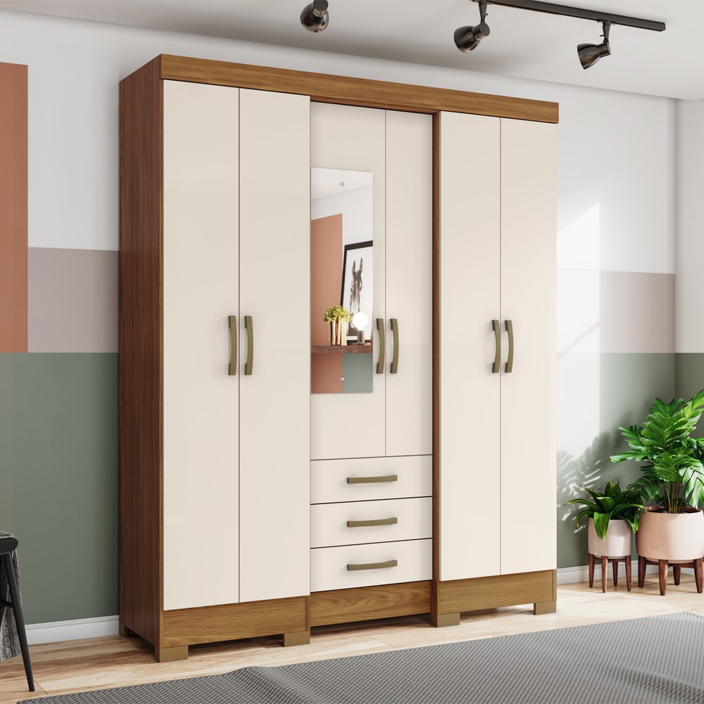 Guarda Roupa Casal 6 Portas 3 Gavetas 163 cm B23 Nature Off White Briz