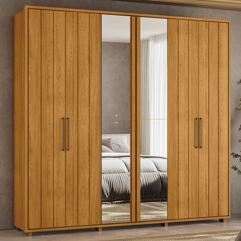 Guarda Roupa Casal Miro 6 Portas Com Espelho 250 cm Cinamomo Madetec