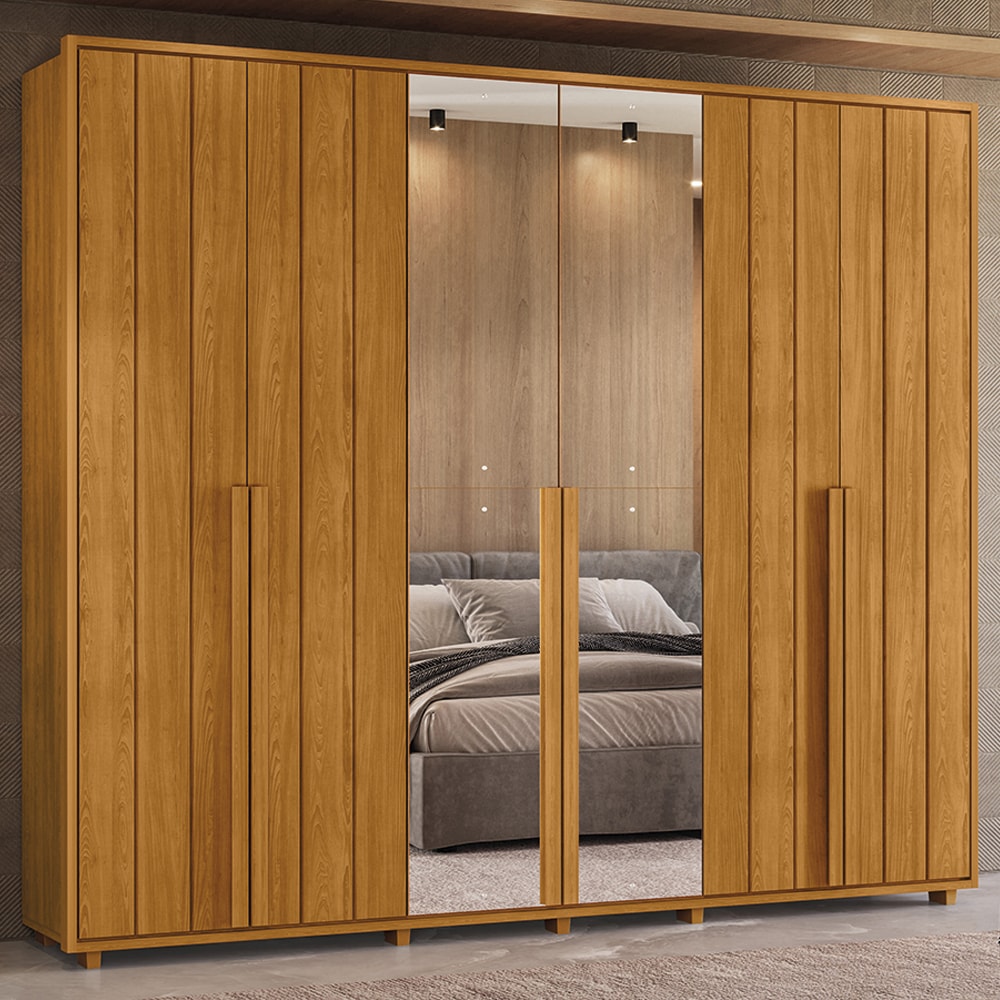 Guarda Roupa Casal Volpi 6 Portas Com Espelhos MDF 278 cm Cinamomo Madetec