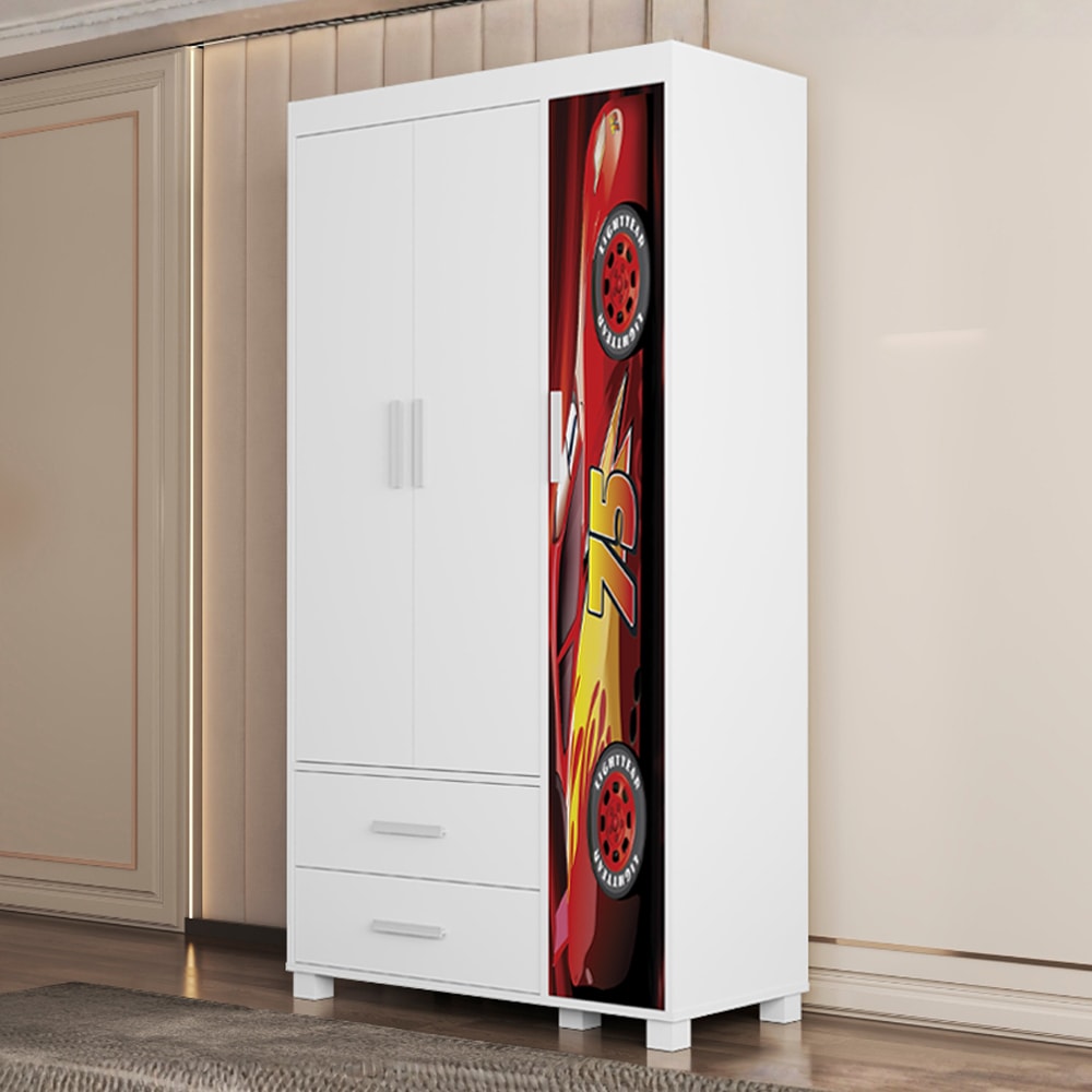 Guarda Roupa Infantil Livia, onde a imaginação ganha vida e cada dia vira uma nova aventura! Produzido com estrutura 100% em MDF de (03/12/15 mm) e acabamento verniz brilho. Conta com portas com dobradiças metálicas (sendo uma delas com Adesivo Temático anti risco) e puxadores PVC. Possui também nichos laterais internos (suportando até 5 kg cada), prateleira central para armazenamento, gavetas com corrediças telescópicas e cabideiro superior. Este produto será entregue em 1 volume.