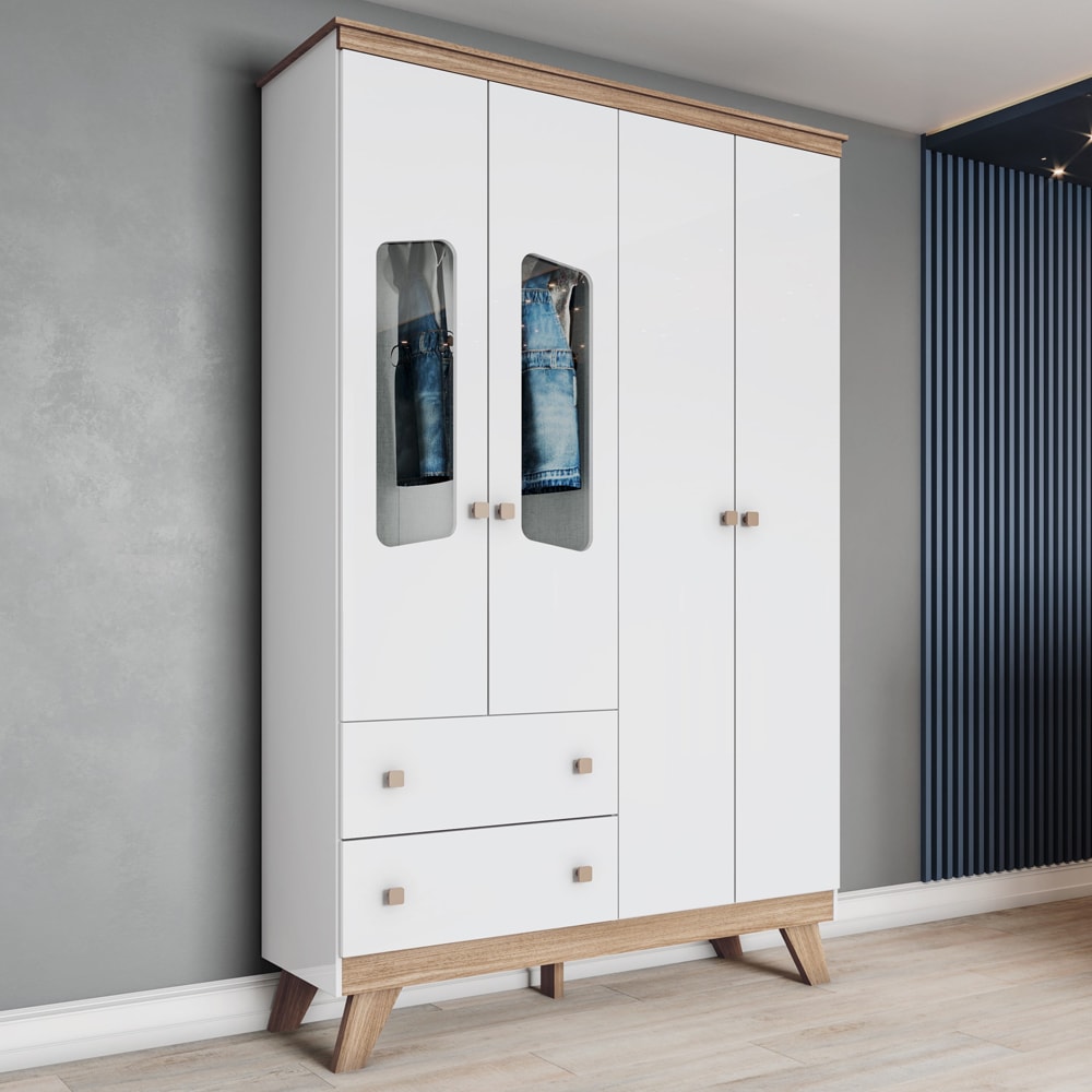 Guarda Roupa Infantil Confete, combinando funcionalidade e leveza para organizar o quarto com charme! Produzido em MDP e MDF 12/15 mm (fundo MDF 3 mm) com pintura UV texturizada. Composto por portas (sendo 2 com visor em vidro) com dobradiças metálicas, gavetas com corrediças telescópicas para abertura suave e puxadores em ABS. Conta também com prateleiras internas, cabideiro em alumínio, e pés em MDF de 25 mm revestido. ITENS DECORATIVOS NÃO INCLUSOS. Produto será entregue em 02 volumes.