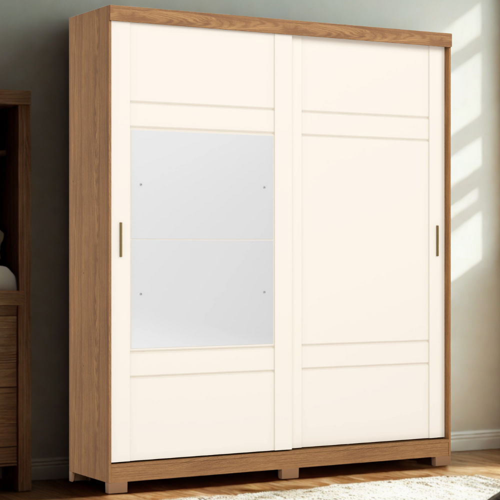 Guarda Roupa Solteiro 2 Portas Com Espelho 200 cm Verg Nature Off White HENN