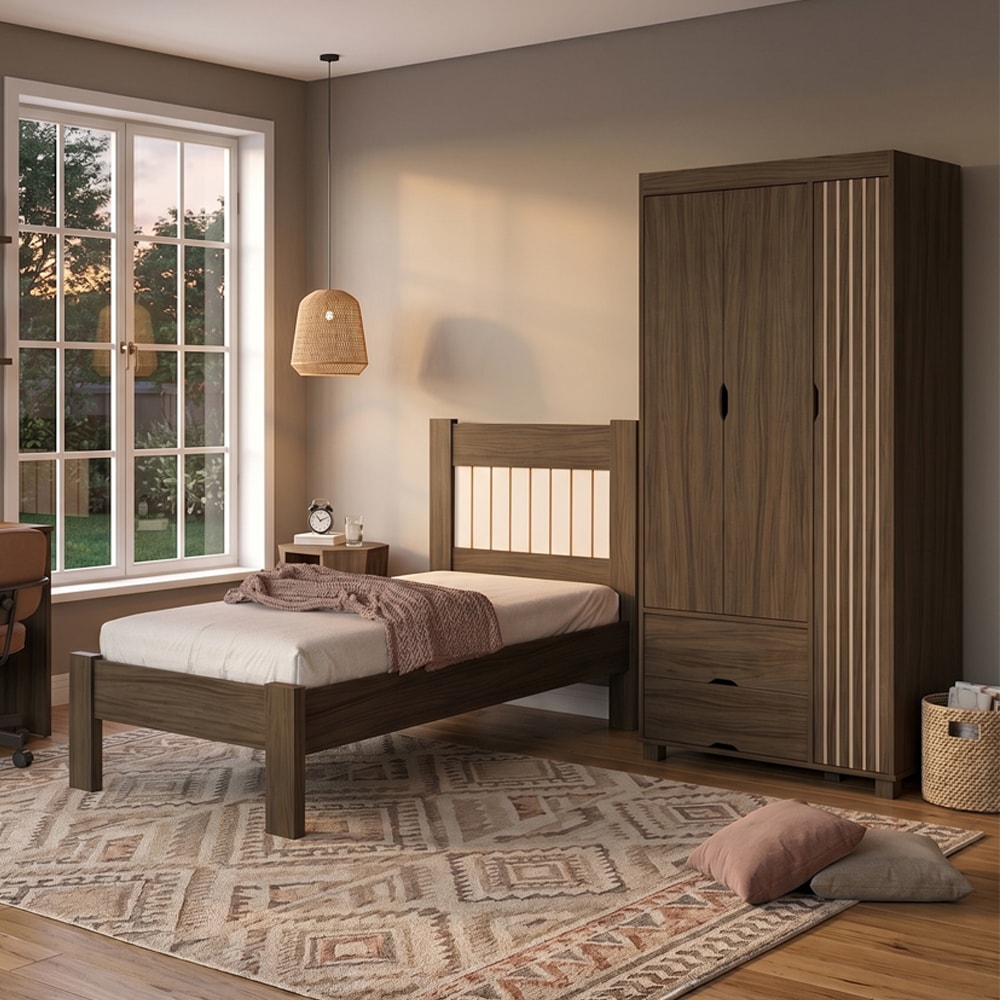 Guarda Roupa e Cama de Solteiro Bela, proporciona bem-estar e praticidade no dia a dia, sendo a escolha perfeita para seu ambiente!