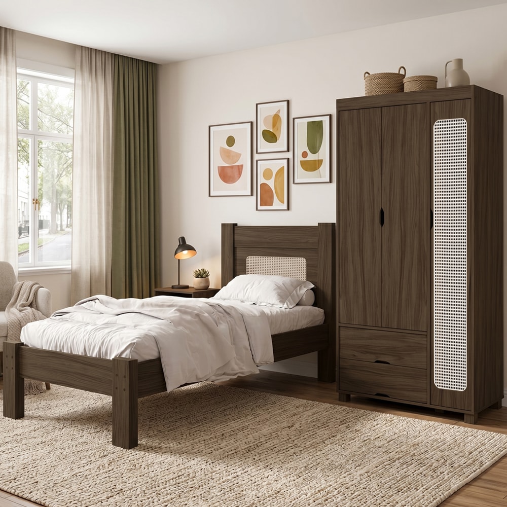 Guarda Roupa Solteiro 3 Portas 2 Gavetas e Cama de Solteiro MDF Clara Chocolate Decmade