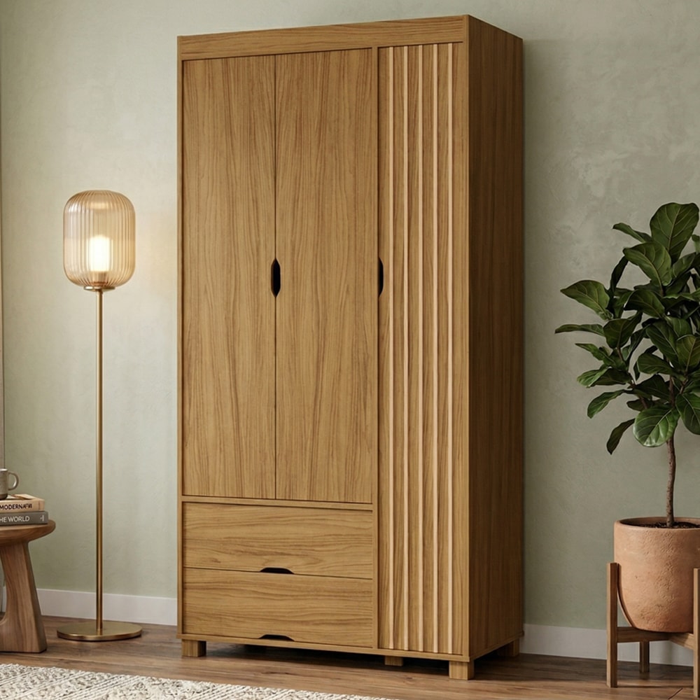 Guarda Roupa Solteiro 3 Portas 2 Gavetas MDF 89 cm Bela Nature Decmade