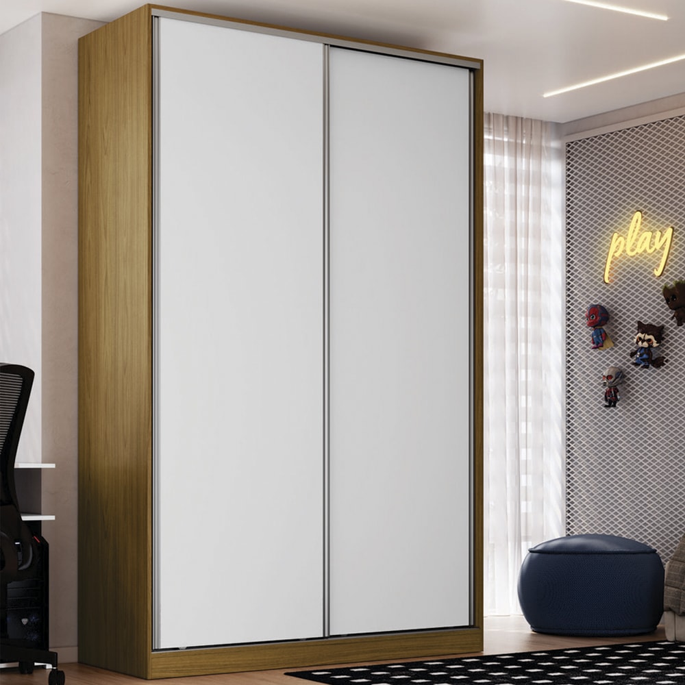 Guarda Roupa Solteiro RC2004 MDF 2 Portas 147 cm Freijó Natura Branco NOVAM