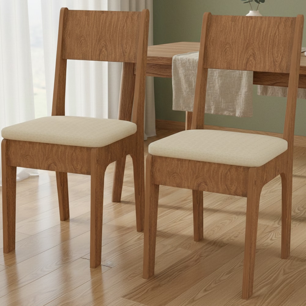 Cadeiras CD01, um kit com design sofisticado e elegante, ideal para quem deseja renovar o ambiente de jantar! Com estrutura 100% MDF 18 mm (assento 15 mm) e acabamento em verniz fosco. Estofadas em espuma D33 e revestidas em tecido Poliéster (de fácil limpeza). Suportam até 120 kg, garantindo segurança e conforto. DECORAÇÕES NÃO INCLUSAS. Este produto será entregue em 1 volume.