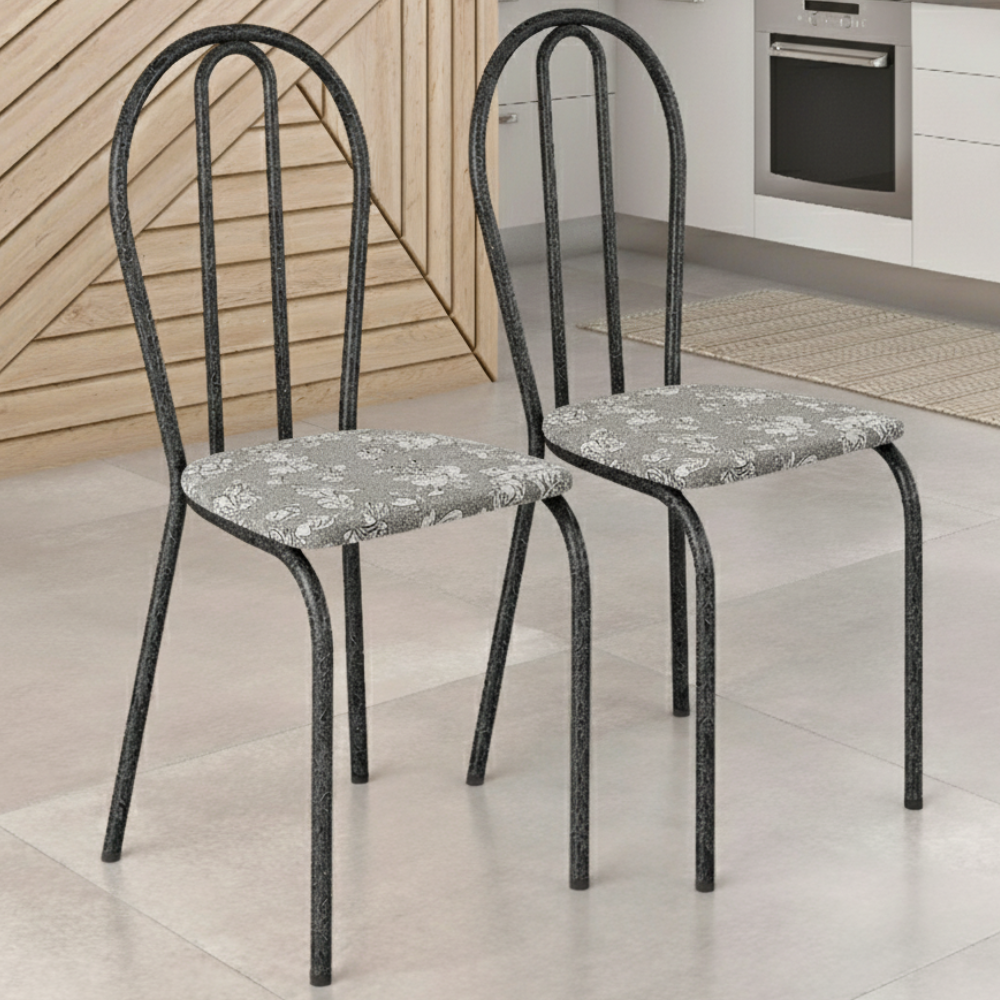 Kit 02 Cadeiras Tubular America 004 Cromo Preto Assento Pará ARTEF