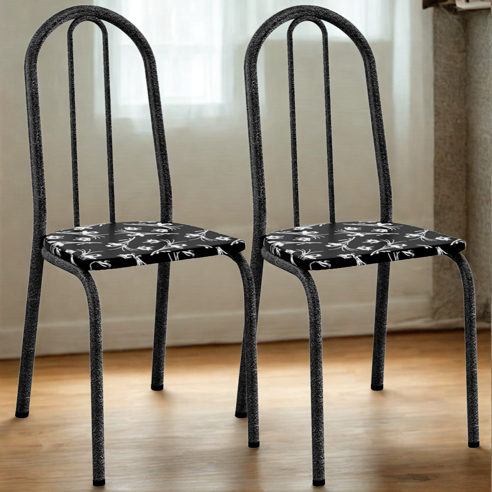 Kit 02 Cadeiras Tubular America 050 Cromo Preto Assento Preto Flor ARTEF