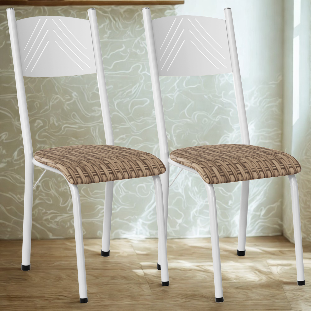 Kit 02 Cadeiras Tubular America 051 Branco Assento Rattan ARTEF