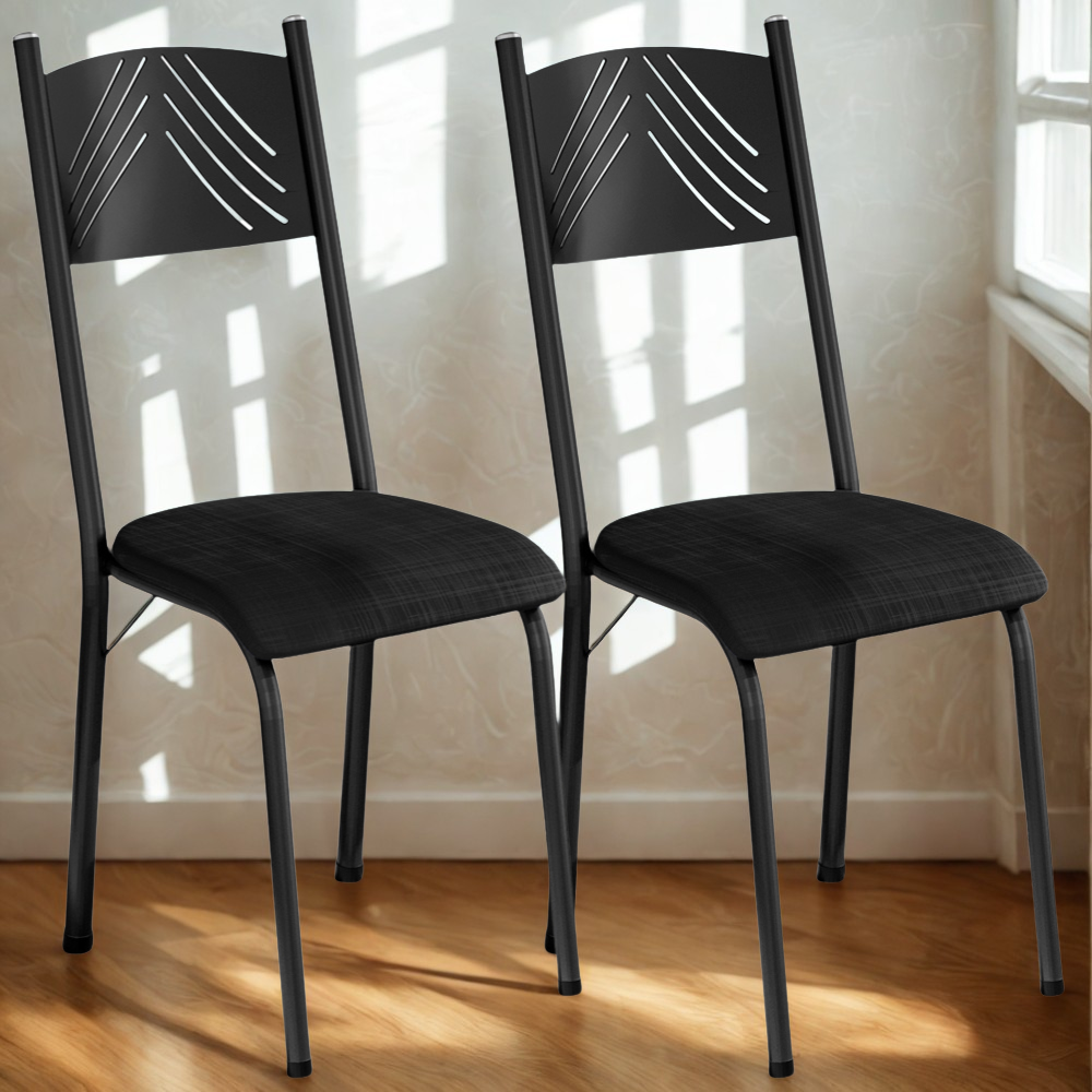 Kit 02 Cadeiras Tubular America 051 Preto Assento Preto Brilhante ARTEF