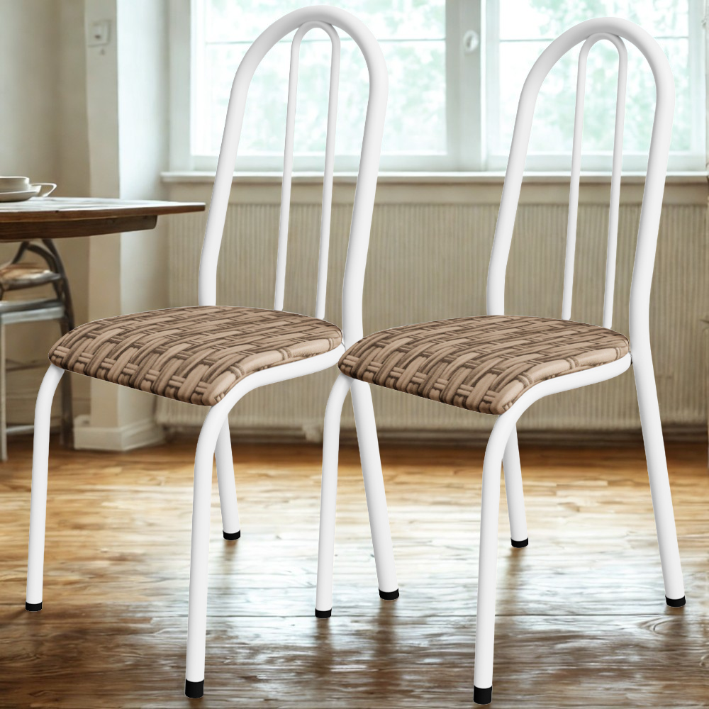 Kit 02 Cadeiras Tubular America 056 Branco Assento Rattan ARTEF