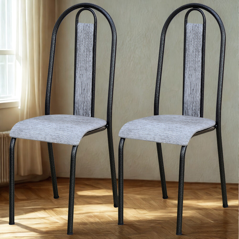 Kit 02 Cadeiras Tubular America 058 Cromo Preto Assento Grafiato ARTEF