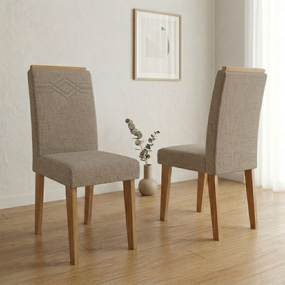Kit 2 Cadeiras Estofadas 11058 Linho Nature Bege MOLCI