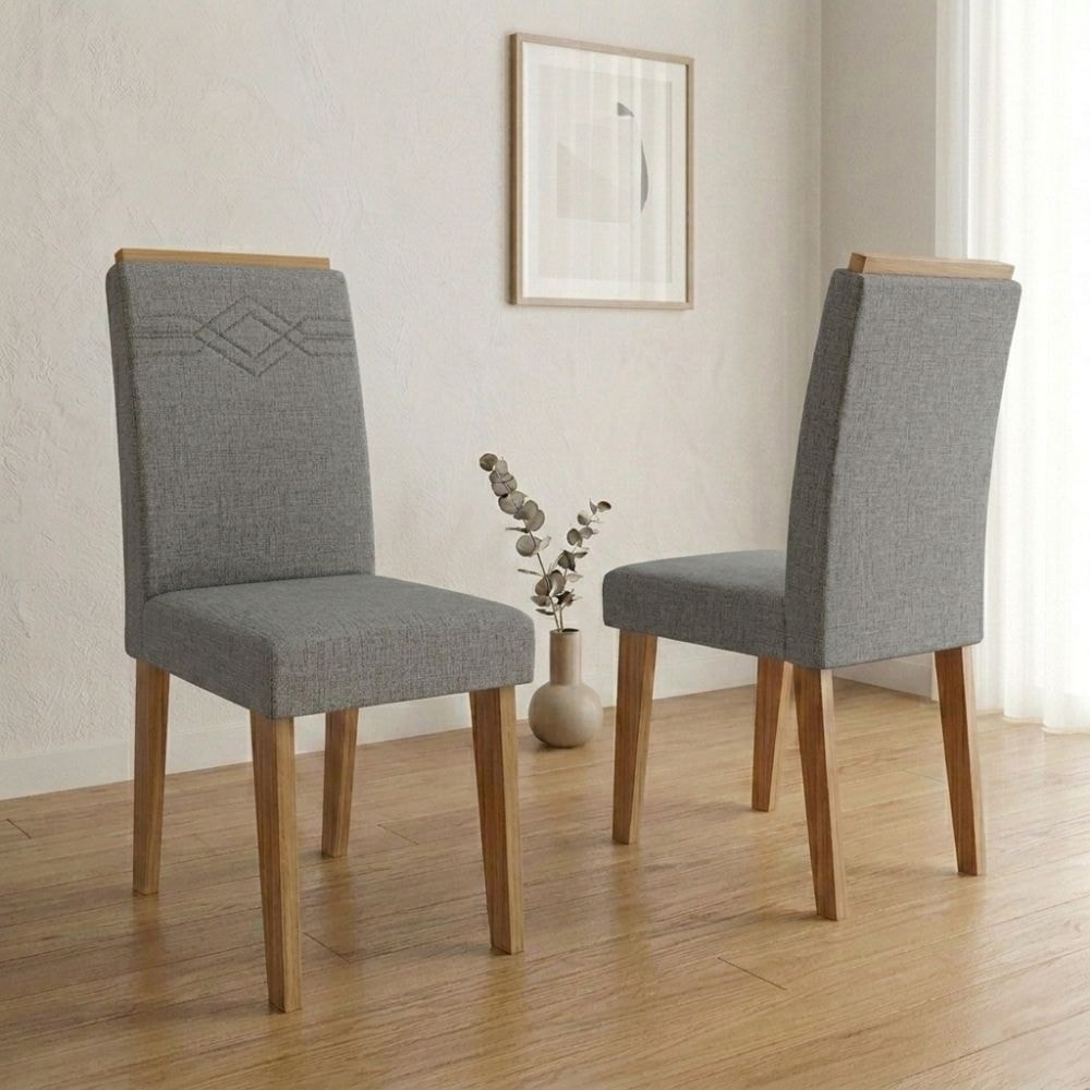 Kit 2 Cadeiras Estofadas 11058 Linho Nature Grafite MOLCI