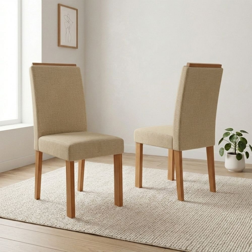 Cadeiras Júlia, agregam valor ao seu ambiente com design moderno, conforto envolvente e praticidade para sua rotina. Com estrutura em MDF de 15 mm (espaldar 25 mm) e acabamento em Pintura UV (semi brilho). Assento e encosto estofados em espuma de alta densidade (7,4 e 11 cm de espessura) e revestidos em tecido Linho (texturizado e moderno). Além de pés em MDF com 25 mm de espessura. Cada cadeira suporta até 100 kg. Conjunto será entregue em 02 volumes.