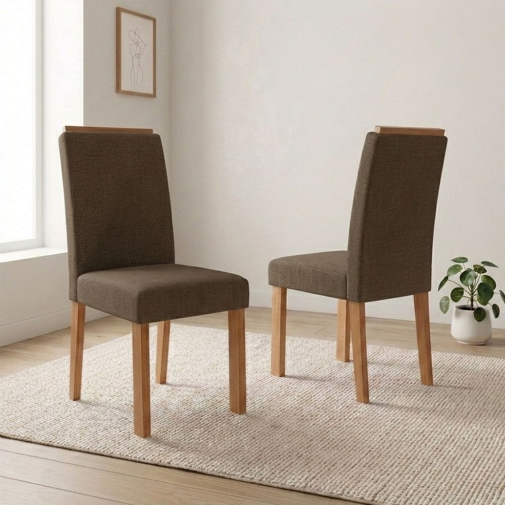 Cadeiras Júlia, agregam valor ao seu ambiente com design moderno, conforto envolvente e praticidade para sua rotina. Com estrutura em MDF de 15 mm (espaldar 25 mm) e acabamento em Pintura UV (semi brilho). Assento e encosto estofados em espuma de alta densidade (7,4 e 11 cm de espessura) e revestidos em tecido Linho (texturizado e moderno). Além de pés em MDF com 25 mm de espessura. Cada cadeira suporta até 100 kg. Conjunto será entregue em 02 volumes.