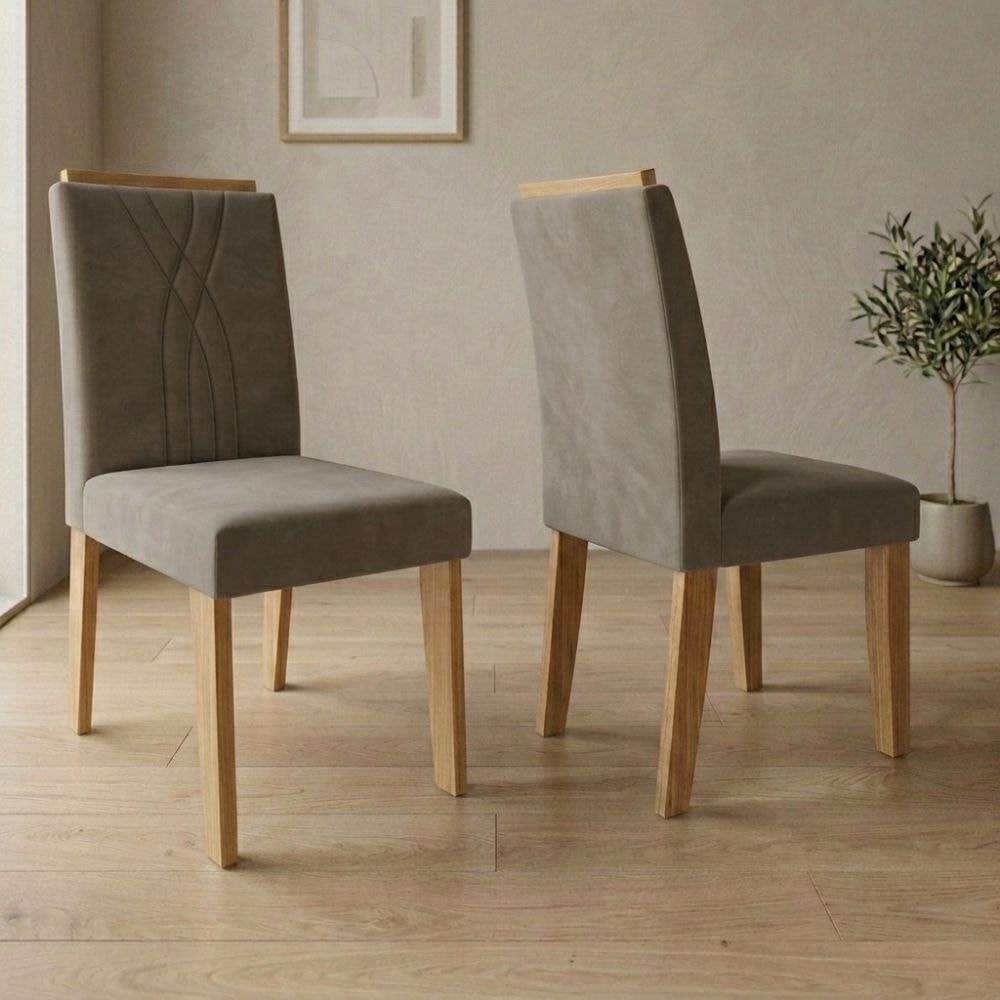 Cadeiras Nicole, idealizadas para oferecer um equilíbrio impecável entre estética, conforto e praticidade. Com estrutura em MDF de 15 mm (espaldar 25 mm) e acabamento em Pintura UV (semi brilho). Assento e encosto estofados em espuma de alta densidade (7,4 e 11 cm de espessura) e revestidos em tecido Suede (macio e aveludado). Destaca-se por seu encosto com detalhe em costura bordada cruzada. Além de pés em MDF com 25 mm de espessura. Cada cadeira suporta até 100 kg. Conjunto será entregue em 02 volumes.