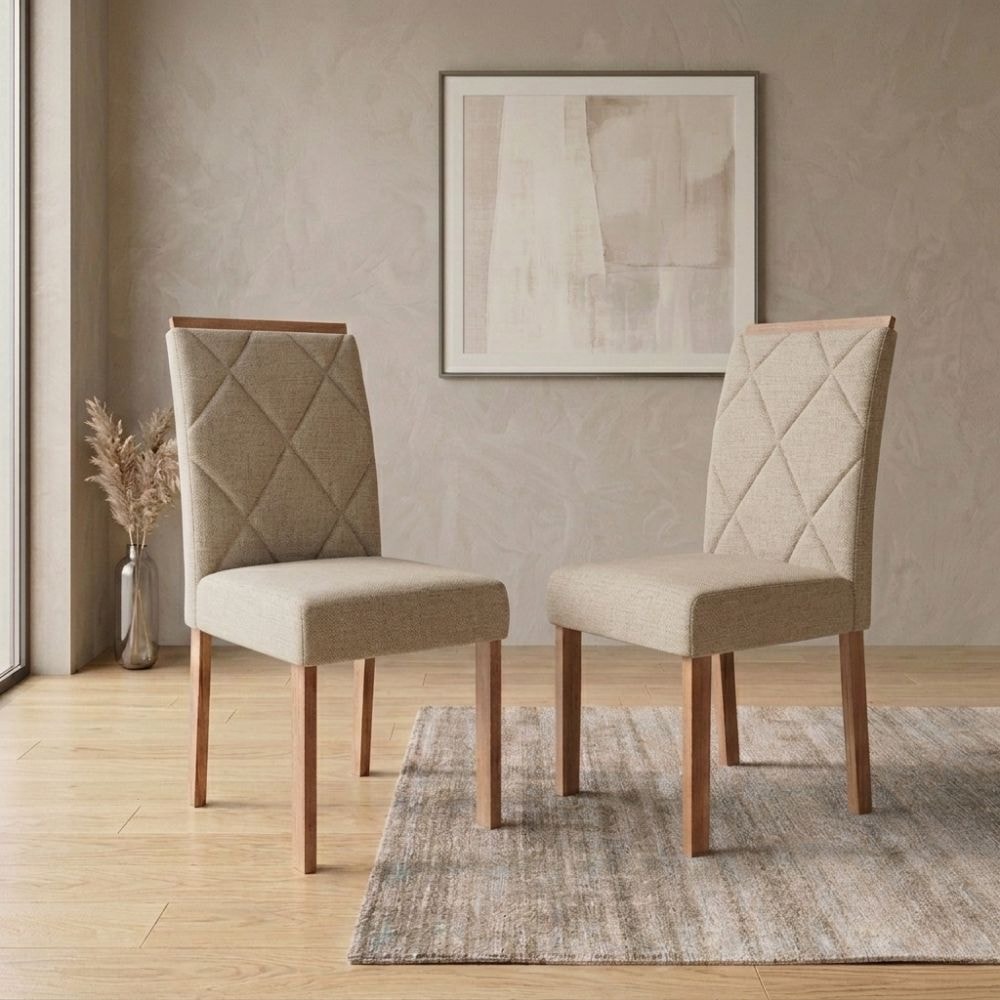 Cadeiras Fernanda Wood, a fusão perfeita entre elegância, conforto e praticidade. Com estrutura 100% Madeira Maciça Tauari de 25 mm (espaldar 20 mm) com acabamento em Verniz (semi brilho). Assento e encosto estofados em espuma de alta densidade e revestidos em tecido Linho (texturizado e moderno). Destaca-se por seu encosto com detalhe em costura bordada diagonal. Cada cadeira suporta até 100 kg. Conjunto será entregue em 01 volume.