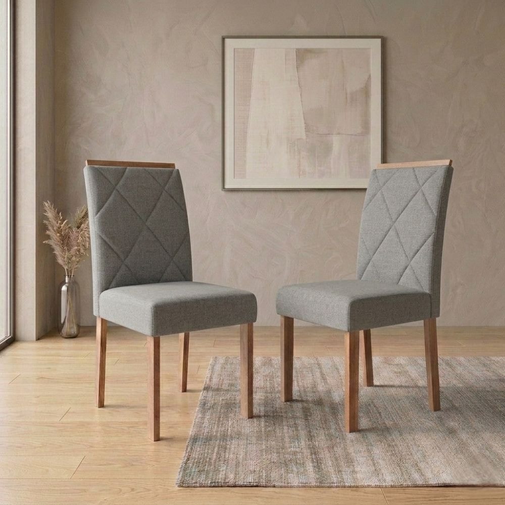 Kit 2 Cadeiras Estofadas Madeira Tauari 20223 Linho Grafite MOLCI