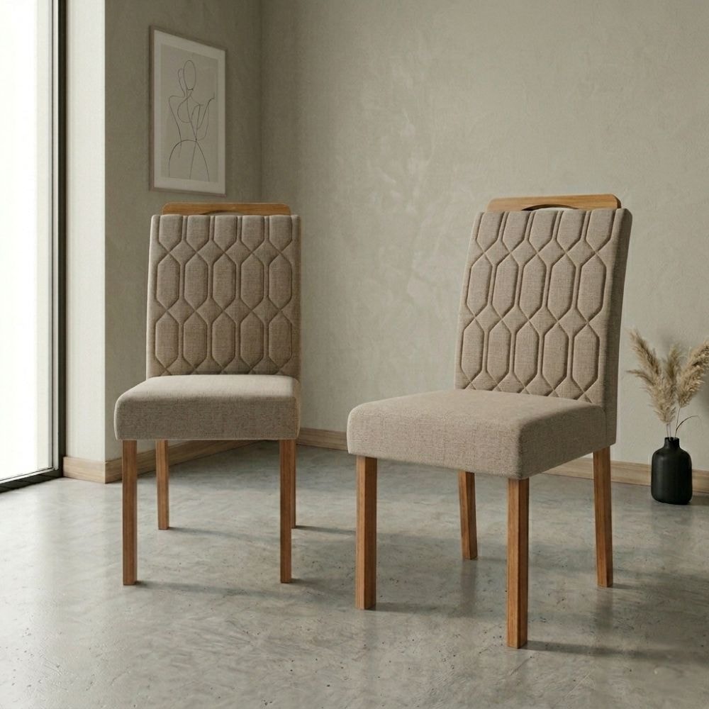 Kit 2 Cadeiras Estofadas Madeira Tauari 20225 Linho Bege MOLCI