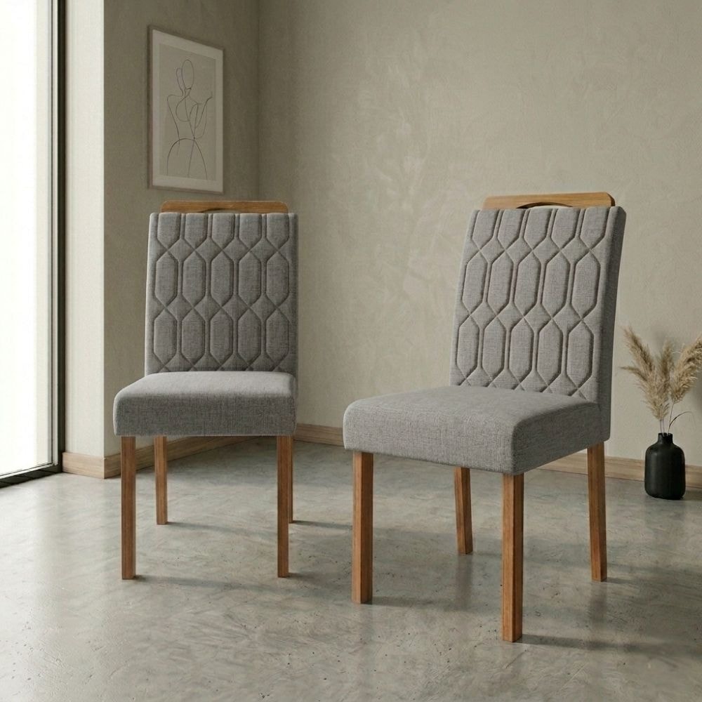 Cadeiras Paola Wood, desenvolvidas para unir estilo, comodidade e versatilidade de forma única. Com estrutura 100% Madeira Maciça Tauari de 25 mm (espaldar 20 mm) com acabamento em Verniz (semi brilho). Assento e encosto estofados em espuma de alta densidade e revestidos em tecido Linho (texturizado e moderno). Destaca-se por seu encosto com detalhe em costura bordada em padrão prismático e espaldar usinado moderno de cantos arredondados. Cada cadeira suporta até 100 kg. Conjunto será entregue em 01 volume.