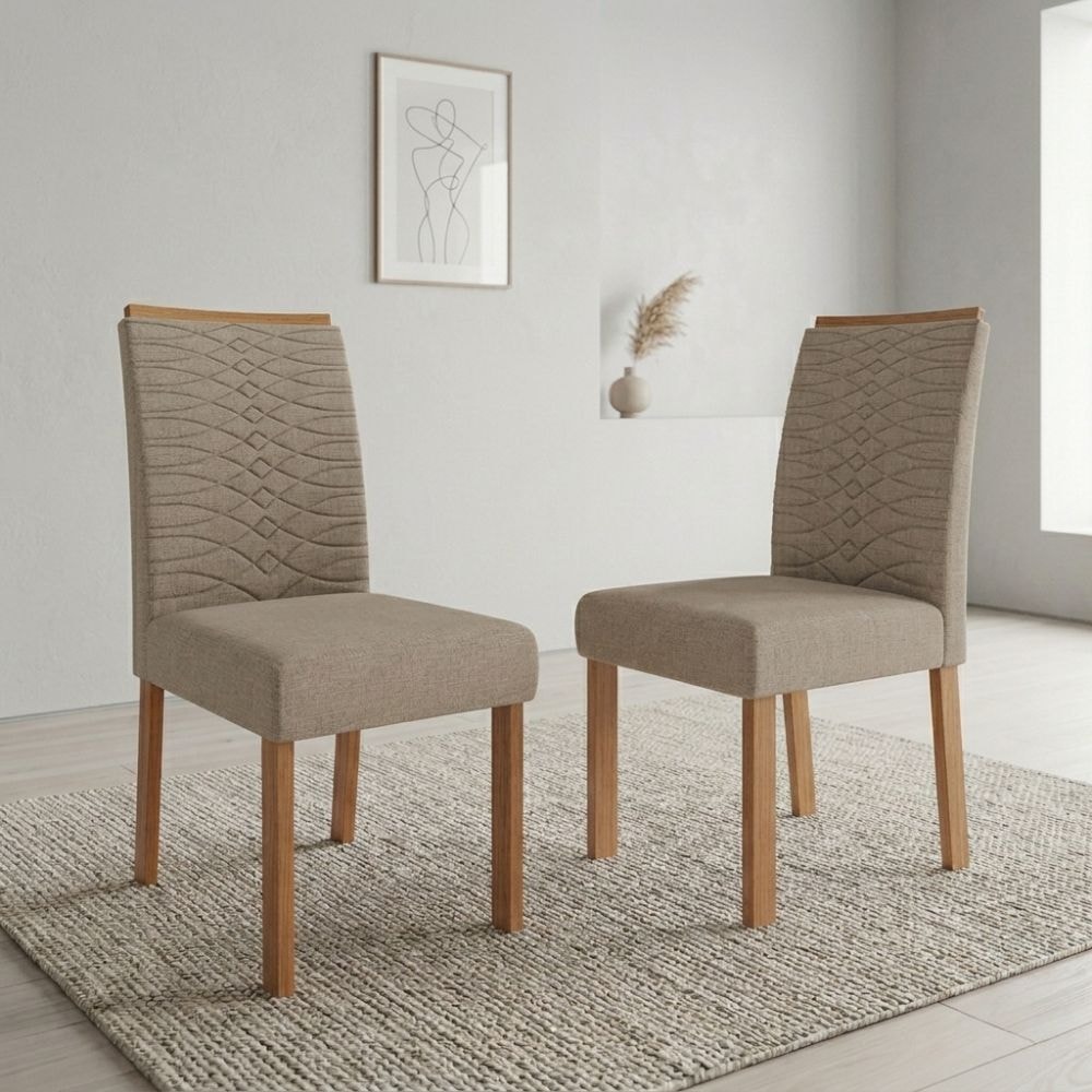 Kit 2 Cadeiras Estofadas Madeira Tauari 20227 Linho Bege MOLCI
