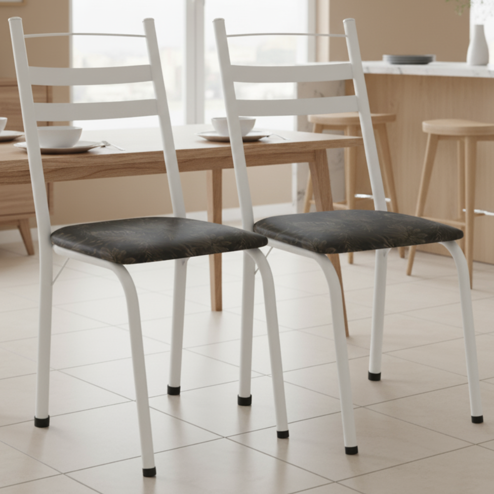 Kit 2 Cadeiras Tubular America 061 Branco Assento Floral Dourado ARTEF