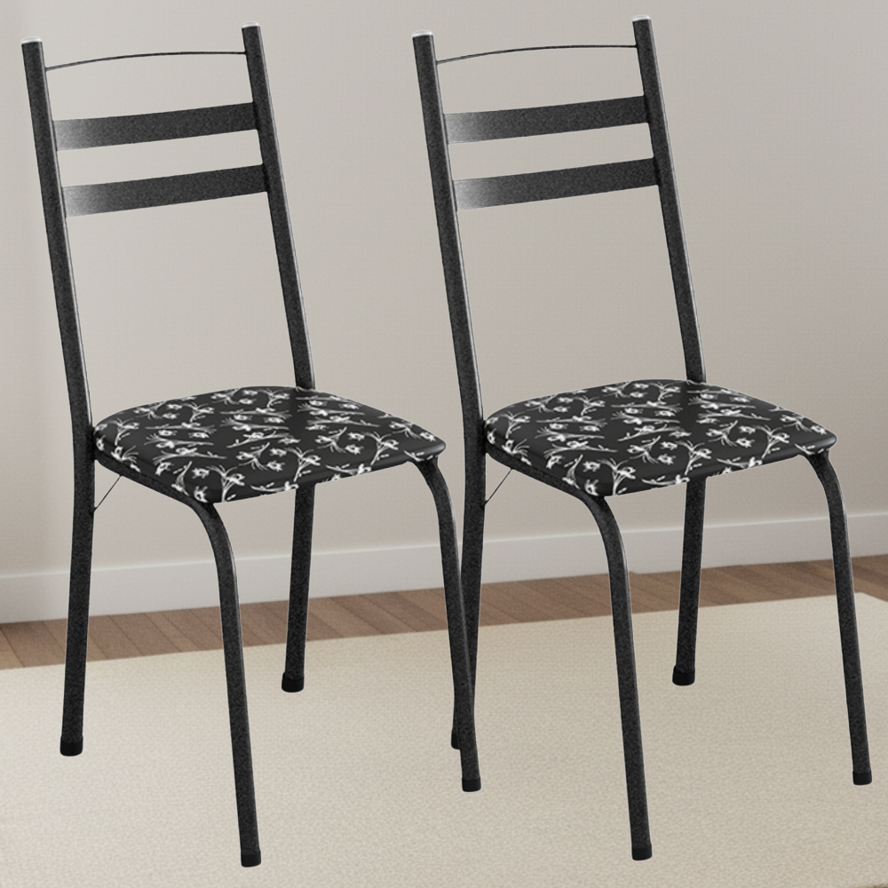 Kit 2 Cadeiras Tubular America 061 Cromo Preto Assento Preto Flor ARTEF