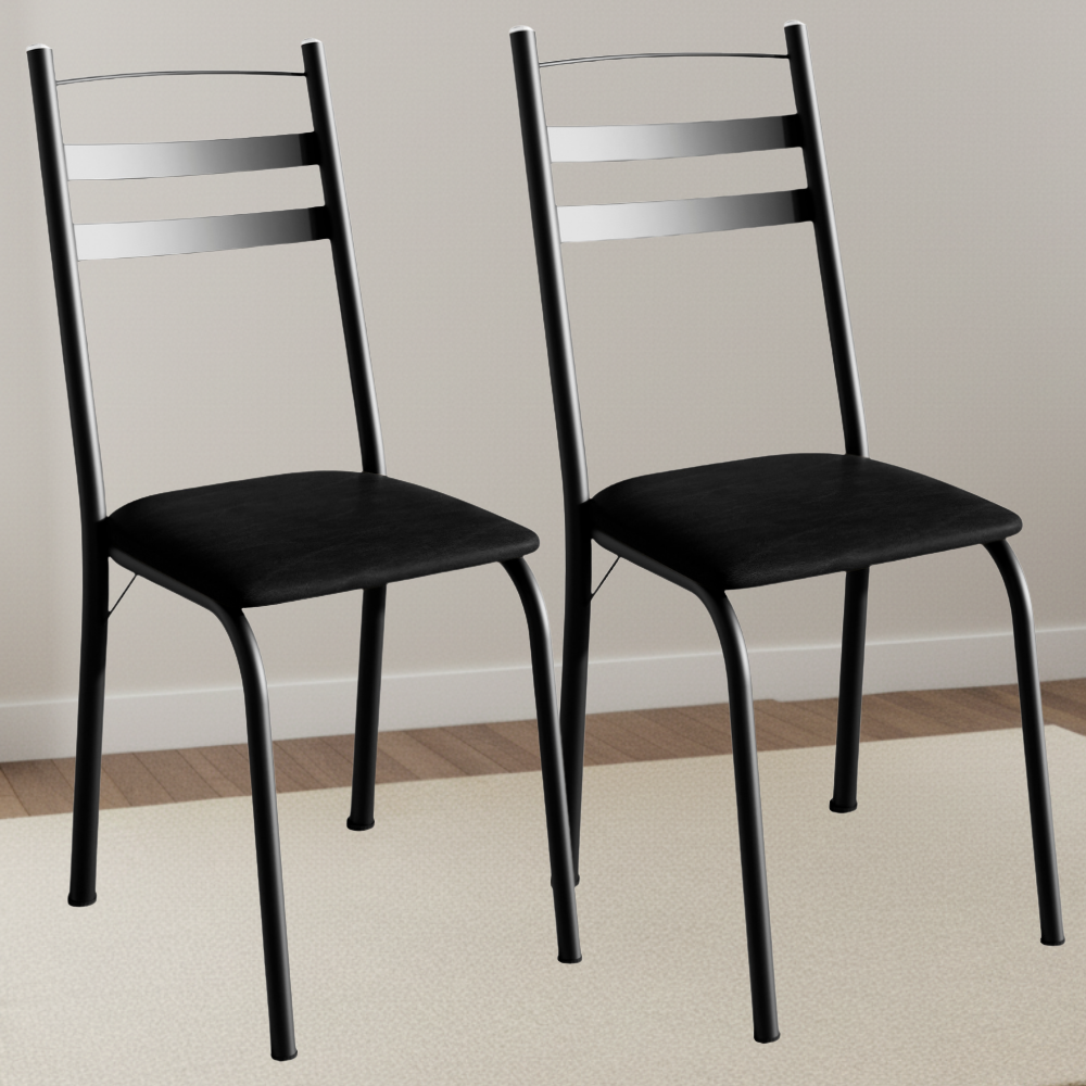 Kit 2 Cadeiras Tubular America 061 Preto Assento Preto Brilhante ARTEF