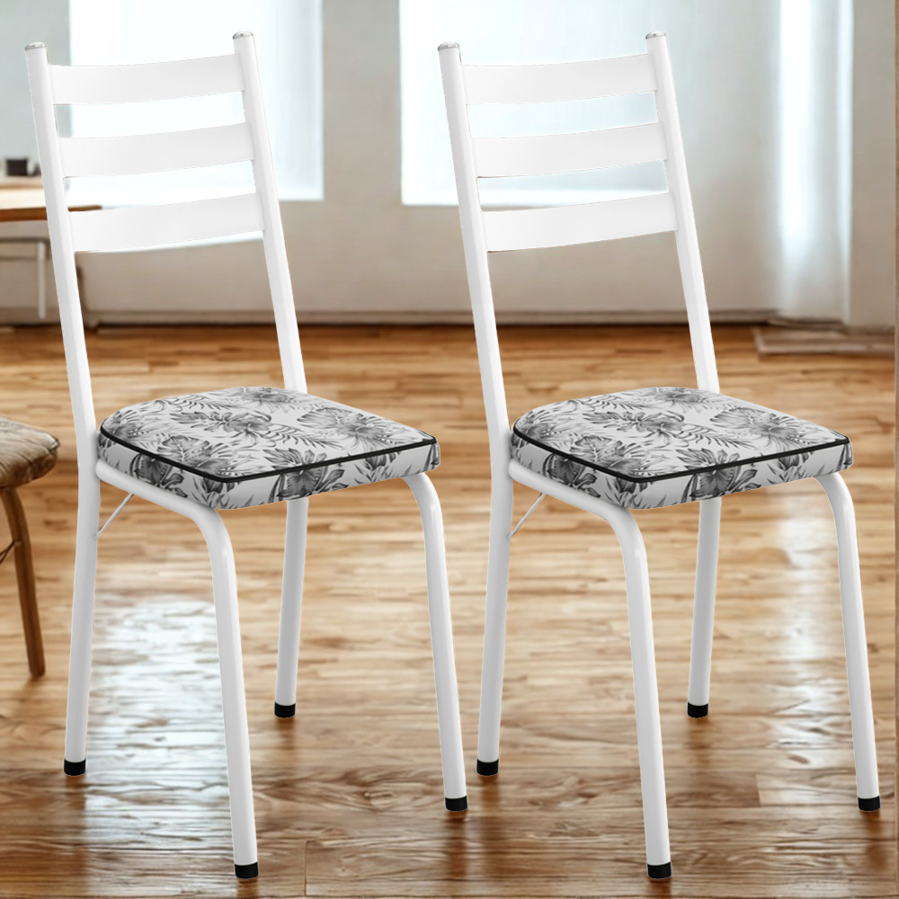 Kit 2 Cadeiras Tubular Europa 118 Branco Assento Floral Cinza ARTEF
