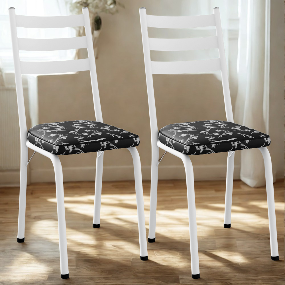 Kit 2 Cadeiras Tubular Europa 118 Branco Assento Preto Flor ARTEF