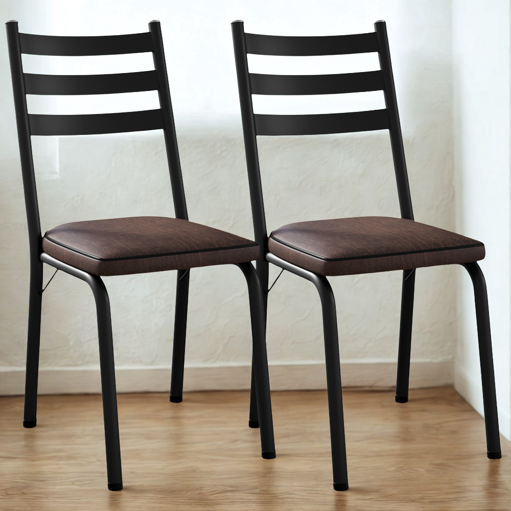 Kit 2 Cadeiras Tubular Europa 118 Preto Assento Madeira Imbuia ARTEF