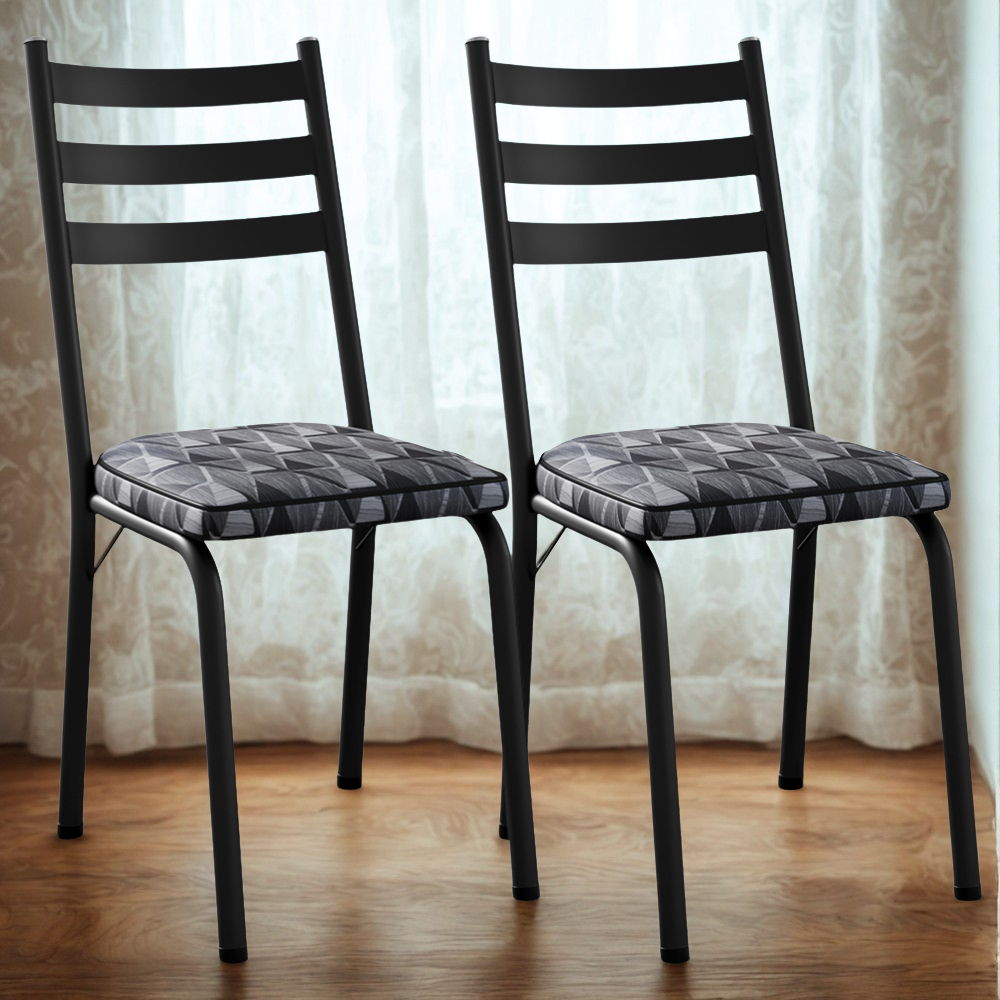 Kit 2 Cadeiras Tubular Europa 118 Preto Assento Mosaico Silver ARTEF
