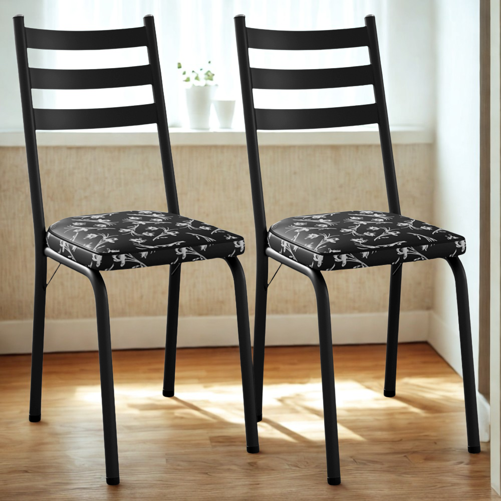 Kit 2 Cadeiras Tubular Europa 118 Preto Assento Preto Flor ARTEF