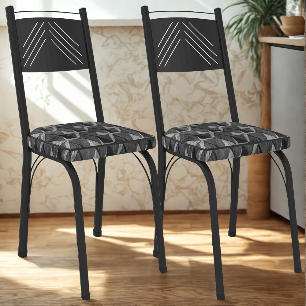 Kit 2 Cadeiras Tubular Europa 151 Preto Assento Mosaico Silver ARTEF