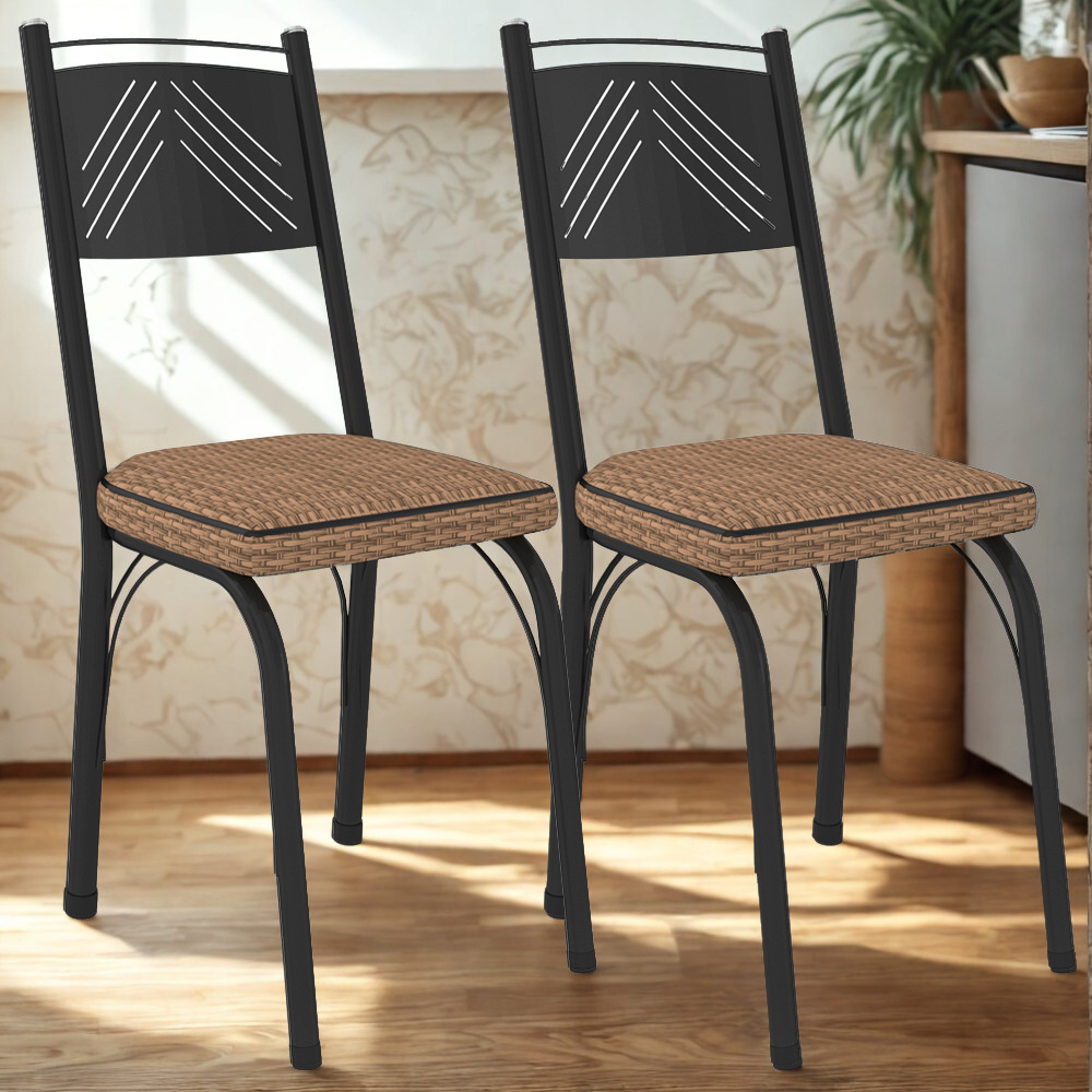 Kit 2 Cadeiras Tubular Europa 151 Preto Assento Rattan ARTEF